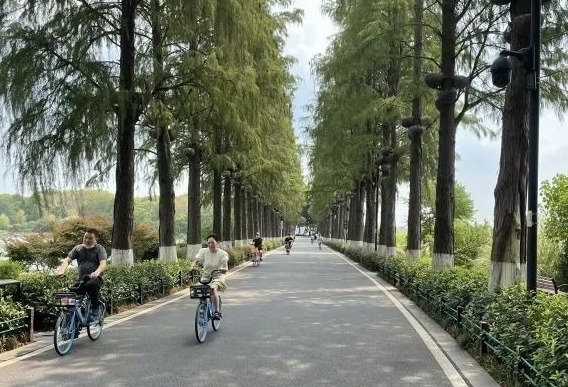 市民在东湖绿道骑行。 记者孙笑天 摄