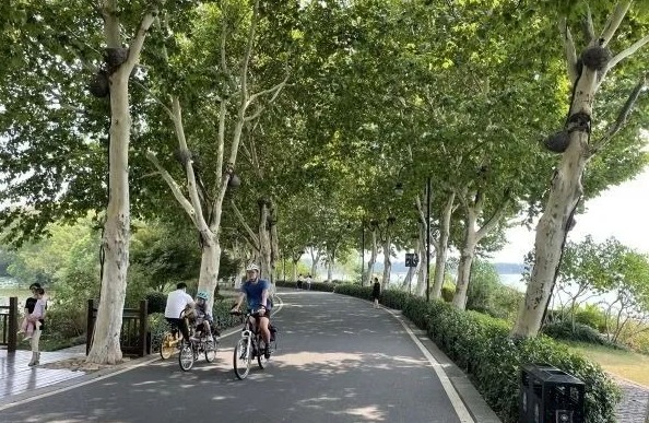 但徐先生认为,绿道可采用虚实线结合的方式,在一些弯道或上下坡视线受阻的位置,通过划线来提醒和引导游客。“秋天快到了,东湖绿道将迎来旅游高峰,骑行的人越来越多,设置一些分道线,更利于市民游玩。”