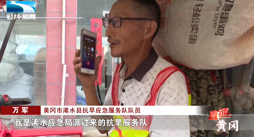 黄冈市浠水县抗旱应急服务队队员 万军:“这个水已经送上去了,天气炎热我们也知道,好的,可以,下一站到哪儿,巴河太子山。”
