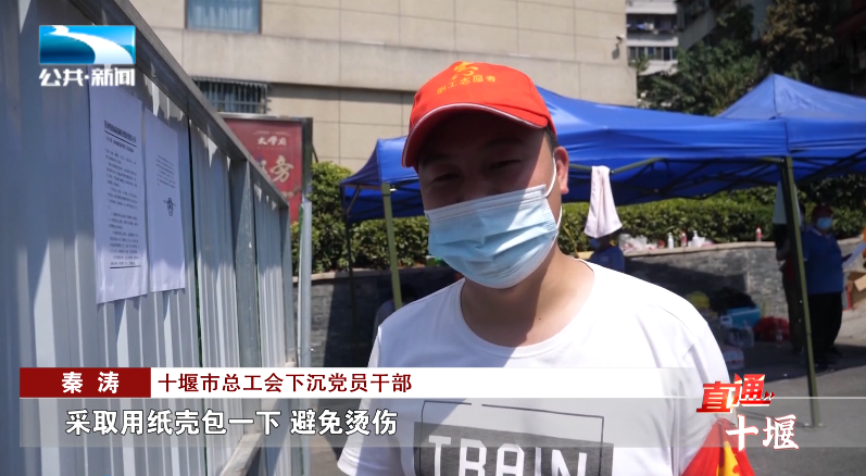 十堰市总工会下沉党员干部 秦涛:“我们就地取材,采取用纸壳包一下,避免烫伤。”