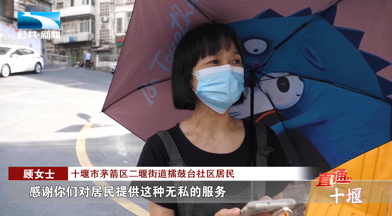 十堰市茅箭区二堰街道擂鼓台社区居民 顾女士:“非常辛苦,感谢你们对居民提供这种无私的服务。”