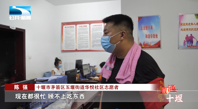 十堰市茅箭区五堰街道华悦社区志愿者 陈强:“你看他们多辛苦,现在都很忙,顾不上吃东西。”