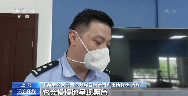 上海市公安局普陀分局曹杨新村派出所探长 周琛:前十分钟的颜色是呈现一个黄褐色,后续它会慢慢地呈现一个褐色,从二十分钟到三十分钟,它会慢慢地呈现黑色。