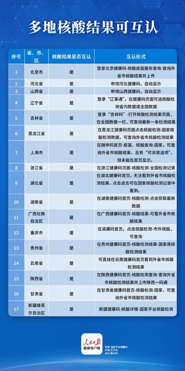 8月27日,健康时报记者摸排发现,据7月29日,国务院应对新型冠状病毒肺炎疫情联防联控机制综合组发布《关于进一步推动新冠病毒核酸检测结果全国互认的通知》已过去近一个月的时间,已完成核酸结果互认的省、市、区已有17个,其中包括北京市、河北省、山西省、辽宁省等。