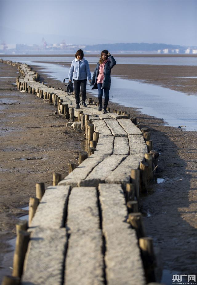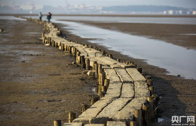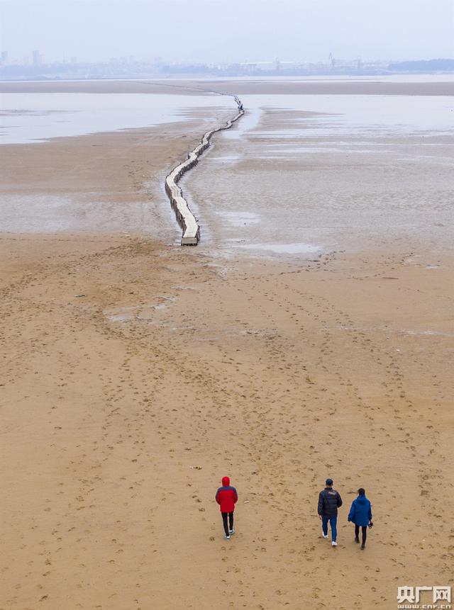 日前,由于鄱阳湖水位下降至枯水位,一座古石桥露出水面。该石桥位于鄱阳湖江西都昌县多宝乡附近的鄱阳湖湖床上,连接都昌县多宝乡蒋公岭和星子县县城,历史上曾是两县沿湖群众往来的交通要道。据都昌县文物保护部门勘测,石桥总长2657米,桥身石材全部采用花岗石,桥面宽0.82米,有900余个孔,故称“千眼桥”。据了解,该桥修建于明代崇祯年间,被称为“全国最长的湖中石桥”,是江西省重点保护文物。