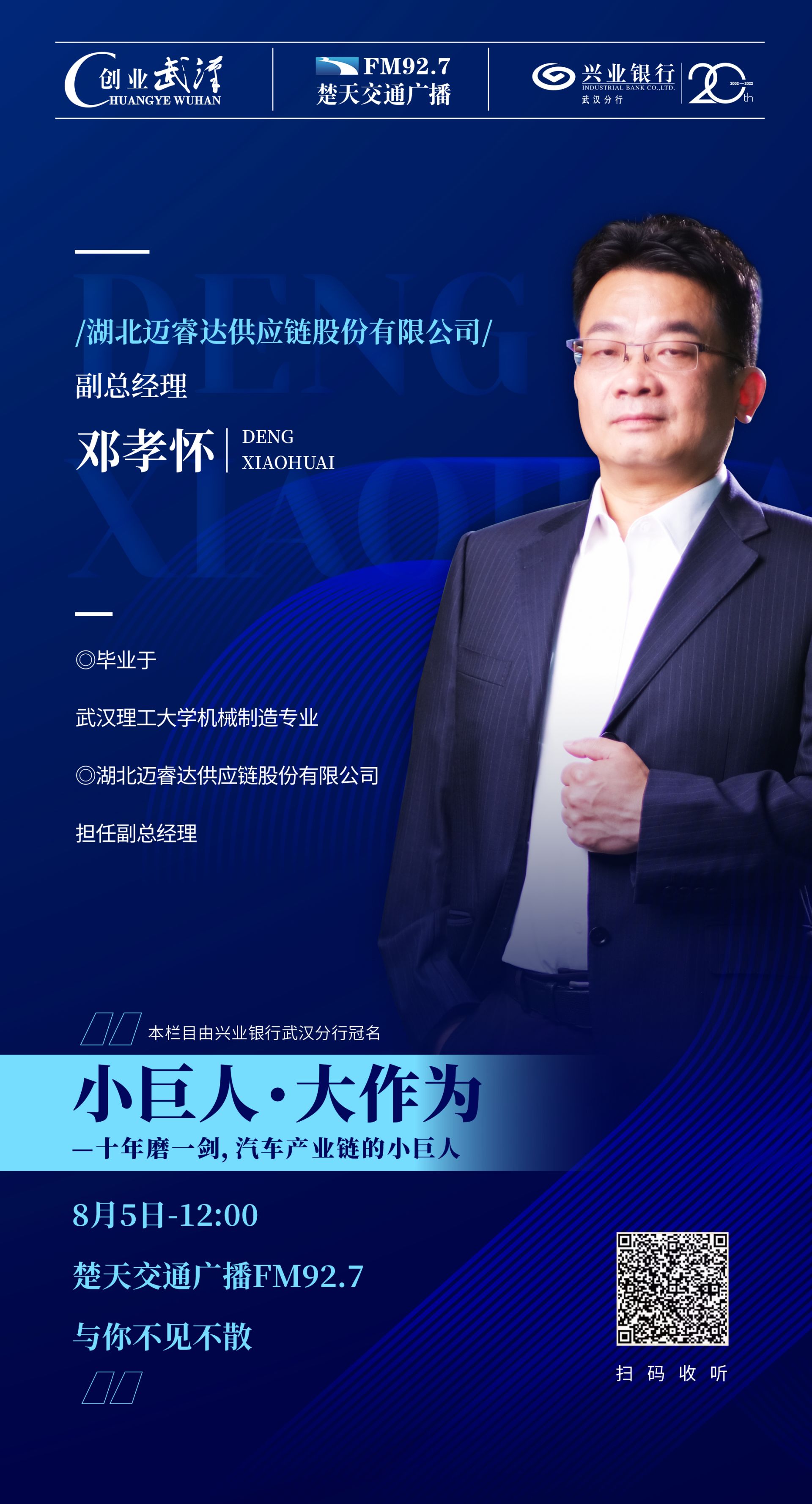 《小巨人•大作为——走进武汉专精特新“小巨人”企业》融媒体栏目第六期的嘉宾是湖北迈睿达供应链股份有限公司副总经理邓孝怀。