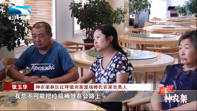 神农架林区红坪镇刘家屋场帅氏农家负责人 张玉华:“我们门口就是个公路,我总不可能把垃圾桶放在公路上。”