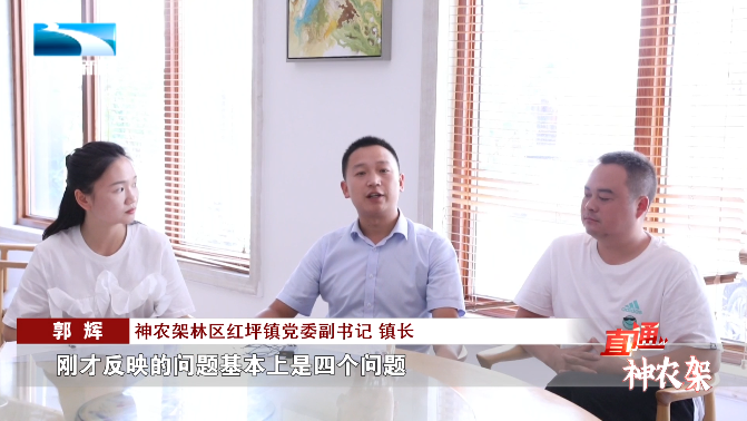 神农架林区红坪镇党委副书记、镇长 郭辉:“刚才反映的问题基本上是四个问题,我现在可以一一来答复。第一个就是垃圾问题,垃圾问题有两个方案,第一个就是在两边增设垃圾桶、第二个就是我们定时来收集。”