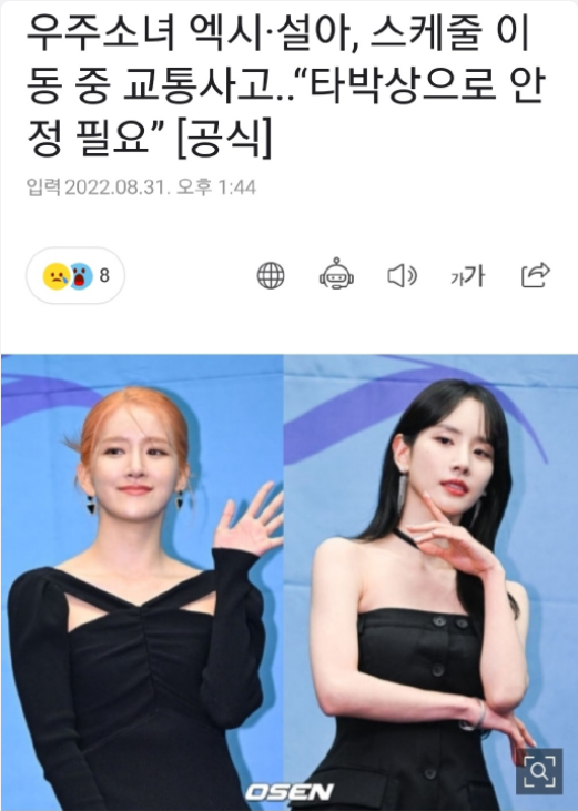 宇宙少女雪娥(左)和EXY发生车祸,幸好两人都无大碍