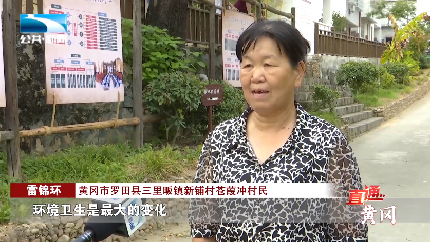 黄冈市罗田县三里畈镇新铺村苍葭冲村民 雷锦环:“环境卫生是最大的变化,变得更好了,以前到处垃圾乱丢,现在三岁的小孩子都知道垃圾丢在垃圾桶里不乱丢。”