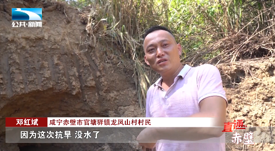 咸宁赤壁市官塘驿镇龙凤山村村民 邓红斌:“因为这次抗旱,没水了,老人说上面有井,具体位置我们不是很清楚,后来我们齐心协力地去找。”
