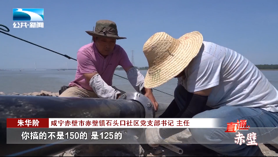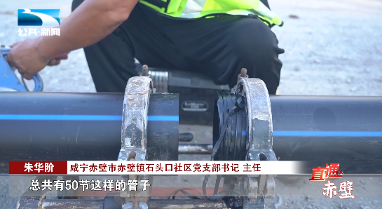 咸宁赤壁市赤壁镇石头口社区党支部书记、主任 朱华阶:“每一节之间用机械把它焊好,要保证它的质量,不能漏水。总共有50节这样的管子,整体有400多米长。”