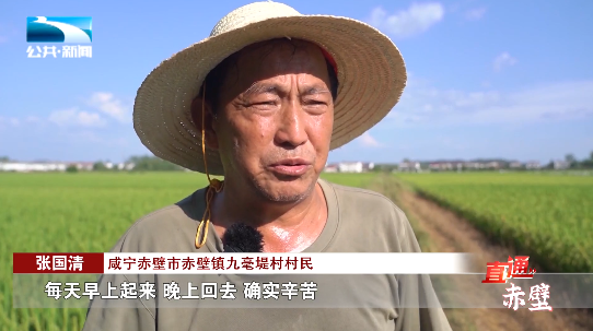 咸宁赤壁市赤壁镇九毫堤村村民 张国清:“每天早上起来,晚上回去,确实辛苦,他要看哪个位置还要帮忙灌水。”
