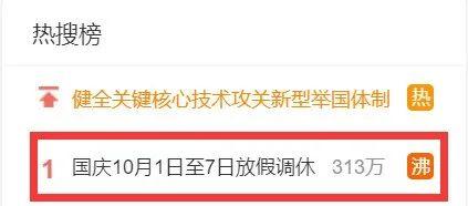 今早,国庆放假安排,冲上微博热搜第一,阅读量超3亿。