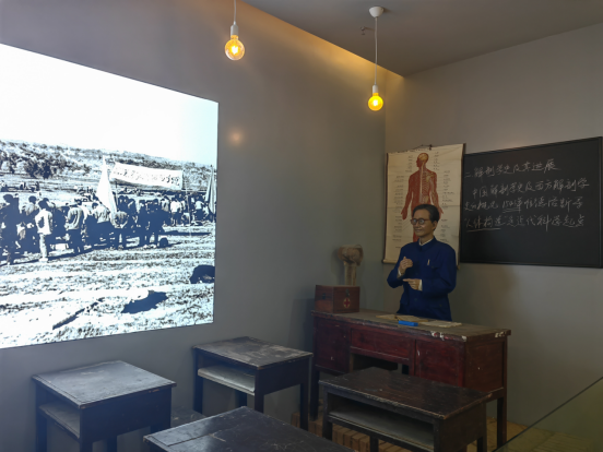 校史馆一角,再现了创始人项仕孝当年上课的情景