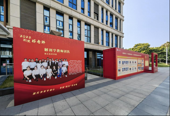 在湖北医药学院教学楼前,庆祝教师节的大幅展板喜庆又醒目,展板背后,就是学院里各科室优秀教师简介。在他们之中,刚刚获得“2022荆楚好老师”殊荣的湖北医药学院解剖学教师团队格外亮眼。湖北医药学院解剖学团队组建已有56年,这里先后走出了3位大学校长,还产生了中国解剖学会副理事长1人、全国优秀教师1人、省级教学名师2人、省级及以上人才项目3人。四代“解剖人”薪火相传,在奉献中坚守,在传承中作为。