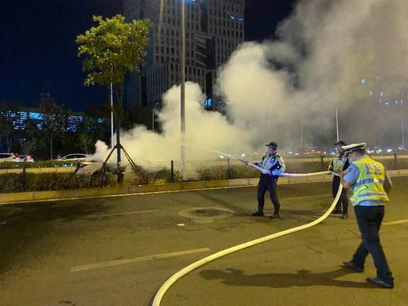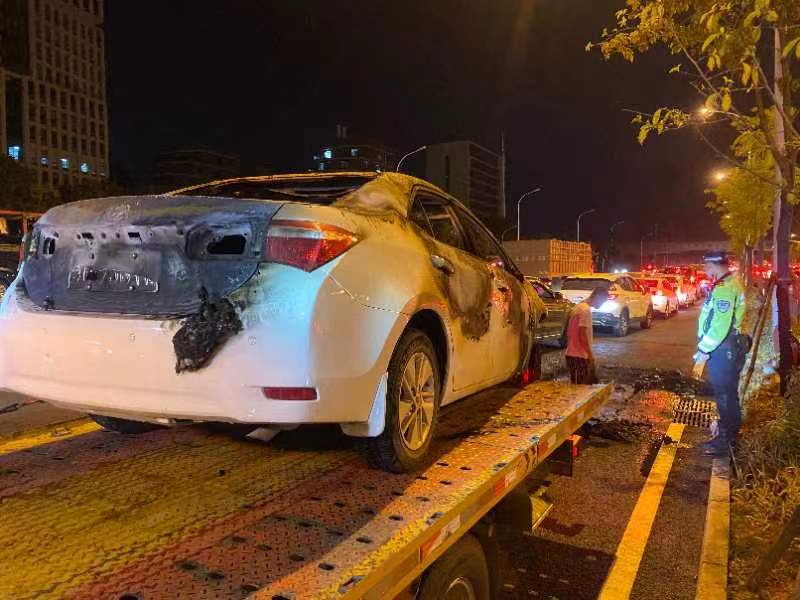 9月9日,在武汉市凤凰园中路发生了一起小车自燃起火事故,附近执勤的光谷交警发现后,立即上前协助驾驶员灭火,同时疏散围观群众,对拥堵路段加强疏导,及时消除了安全隐患。
