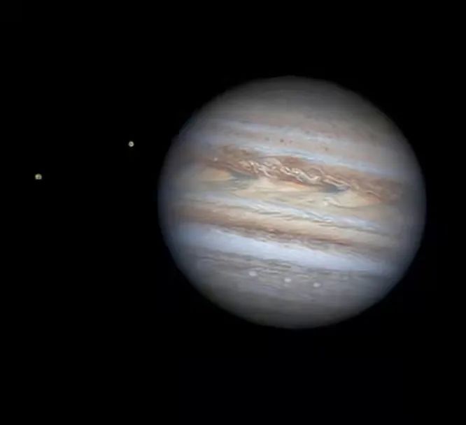 广东省天文爱好者周志伟2020年7月20日在珠海市拍摄的木星及其两颗卫星。