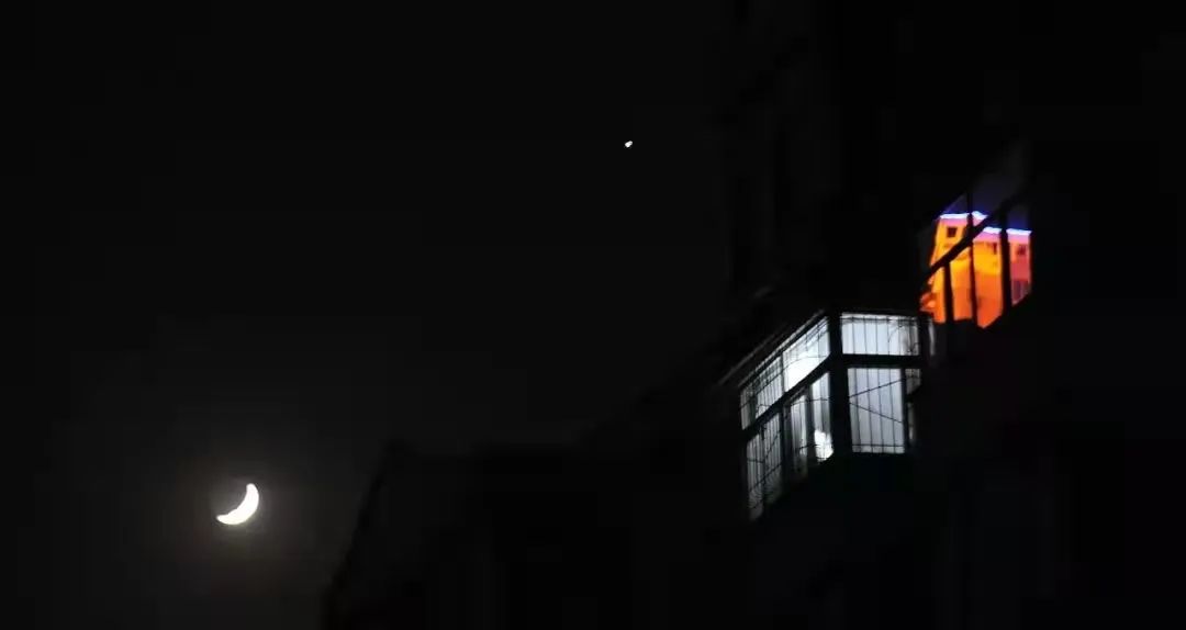 2015年12月31日晚在大连市拍摄的木星合月天象。新华社发(刘德斌 摄)