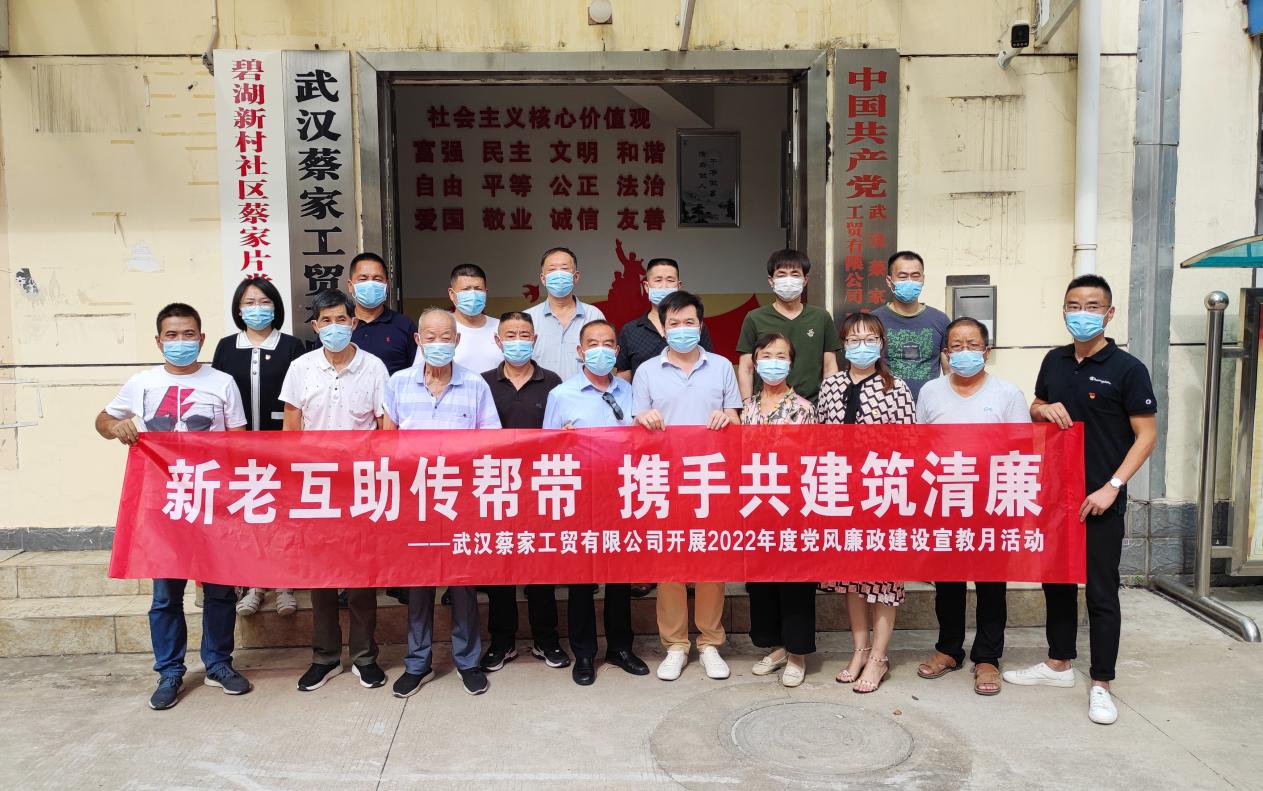 为确保廉洁过节,加快“清廉沌阳”建设,着力营造风清气正的良好政治生态,中秋节前夕,武汉经开区沌阳街武汉蔡家工贸有限公司以“新老互助传帮带、中秋携手筑清廉”为主题,组织开展了一系列党风廉政建设宣教月活动。