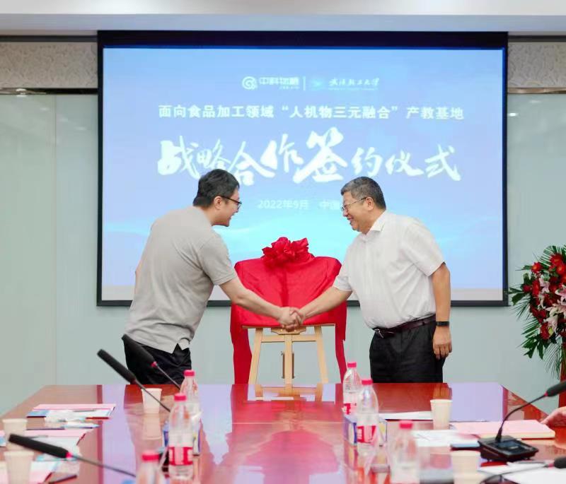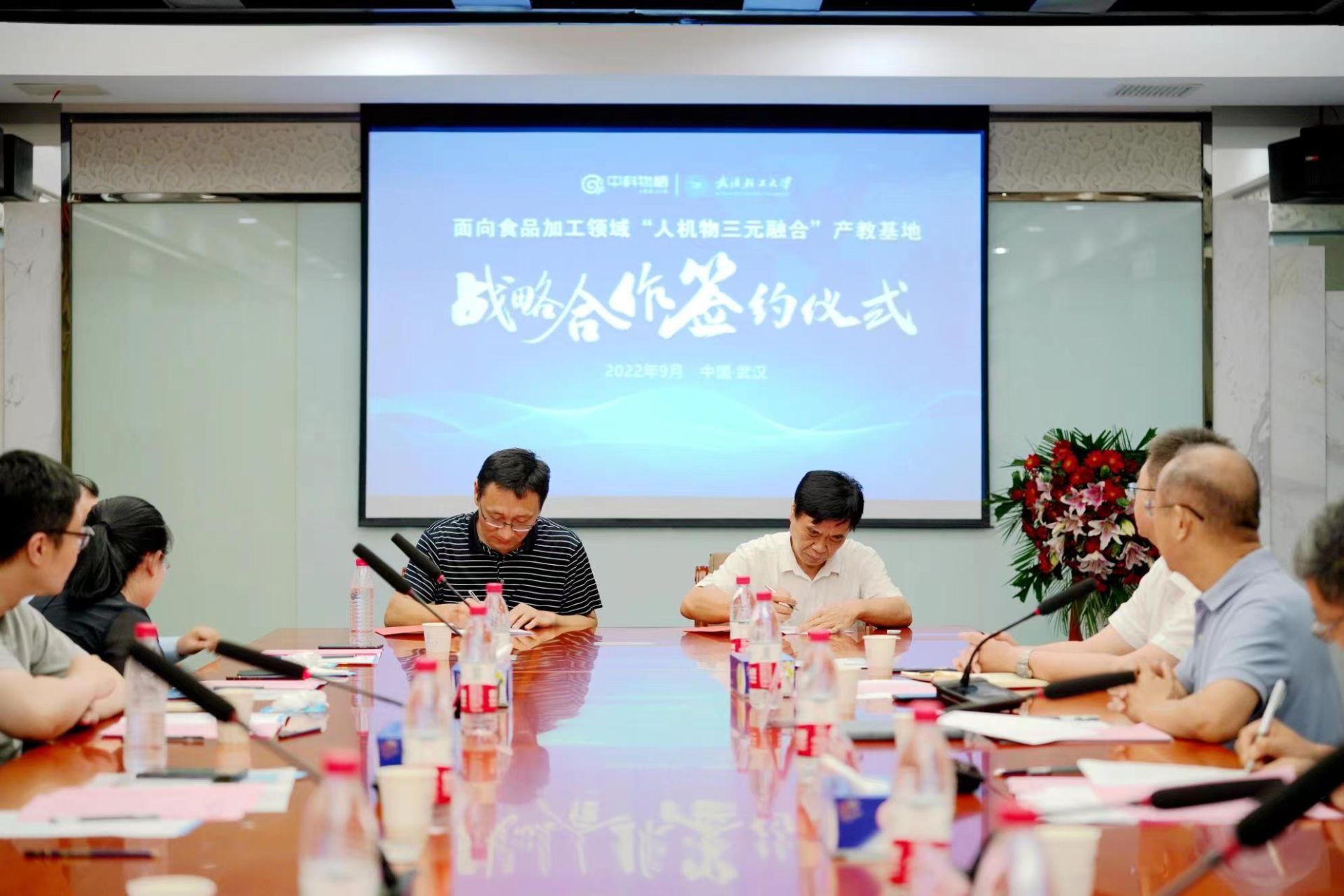 产教融合,共建共享。9月13日下午,中科物栖(北京)科技有限公司(以下简称“中科物栖”)与武汉轻工大学面向食品加工领域“人机物三元融合”产教基地战略合作签约仪式,在该校金银湖校区图书馆7楼会议室举行。中科物栖董事长、CEO张磊,中科物栖高级副总裁孙严,中国教育装备行业协会创造教育分会秘书长沈俊,中科物栖教育行业副总裁包晨,武汉轻工大学党委书记王立兵,校长董仕节,副校长侯永清,副校长汪海波,党委常委、统战部部长汪德平出席会议。会议由校党委副书记刘丰林主持。