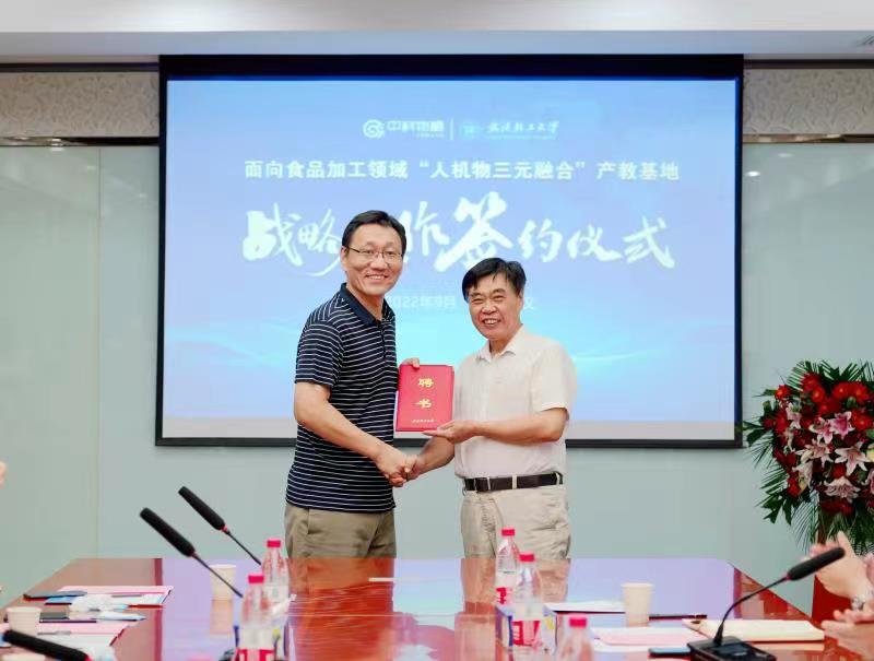 在与会人员的见证下,王立兵与孙严共同为“面向食品加工领域‘人机物三元融合’产教基地”揭牌。张磊、董仕节分别代表中科物栖与武汉轻工大学签署战略合作协议书。董仕节向张磊颁发名誉教授聘书;侯永清向孙严颁发共建“面向食品加工领域信息技术应用创新人才培养基地”捐赠证书。