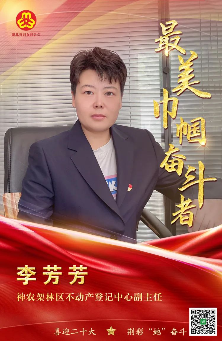 李芳芳,神农架林区不动产登记中心副主任。作为一名共产党员,她严格要求自己,处处发挥共产党员的先锋模范作用,立足本职,真抓实干,创新进取,任劳任怨,无私奉献,在平凡的工作岗位上做出了点点滴滴不平凡的成绩。尤其是在近几年推动国家“放管服”改革和优化营商环境工作中,她打破固有思维,积极应对挑战,充分运用法律专业知识和信息化技术,创新不动产登记新模式,为神农架林区不动产登记工作长足发展作出了积极贡献,连续三年干部考核评为“优秀”等次。