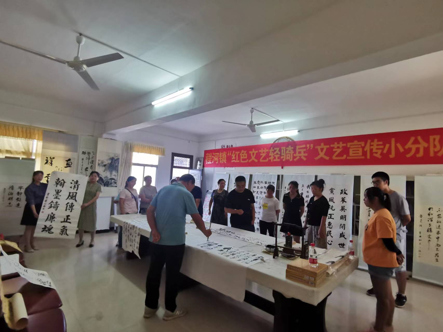 随后,程河镇红色文艺轻骑兵小分队还以文艺表演的形式,开展清廉文化宣讲;书法家协会、美术协会挥毫泼墨、以“廉”入联,以联倡“廉”,创作了一幅幅精美的廉政书法、绘画作品,将清廉文化润入笔端。