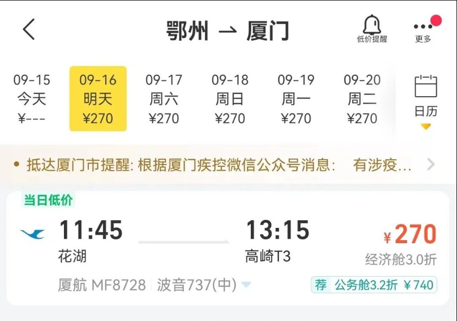 可以从鄂州经厦门中转至