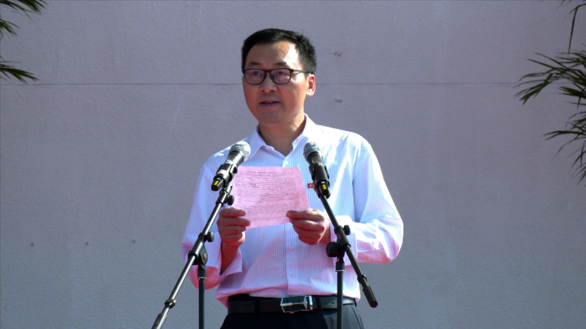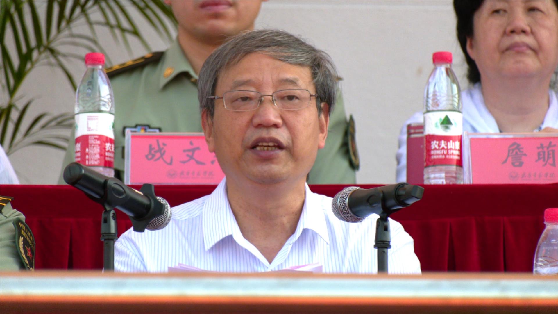 武昌首义学院党委副书记、副校长 金鑫:希望同学们在军训的过程当中,奋力拼搏,无惧挑战,在奋斗中磨炼意志,在奋斗中绽放青春的光彩,同时我也希望同学们在今后4年的学习当中,能够秉承学校“学以广才、志以成学”的校训,努力成为基础知识牢、专业能力强、德智体美劳全面发展的高素质应用型人才。