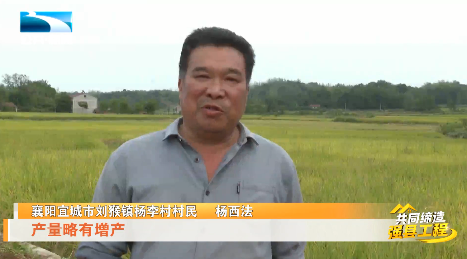 襄阳宜城市刘猴镇杨李村村民 杨西法:“产量略有增产,每亩预计产量在1800斤以上。”