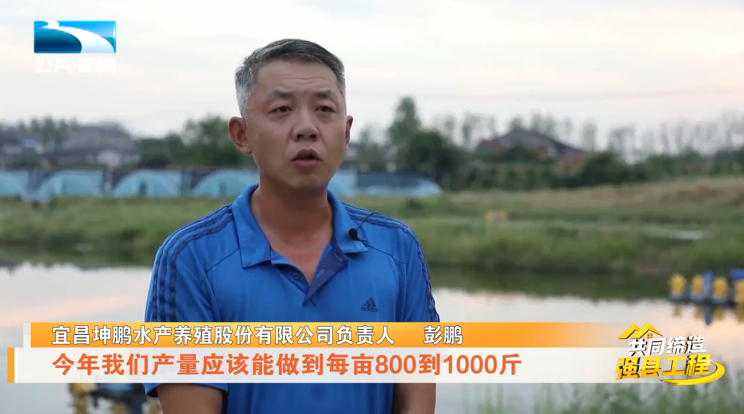 宜昌坤鹏水产养殖股份有限公司负责人 彭鹏:“今年我们产量应该能做到每亩800到1000斤,每亩的产值可以做到20000(元)。”