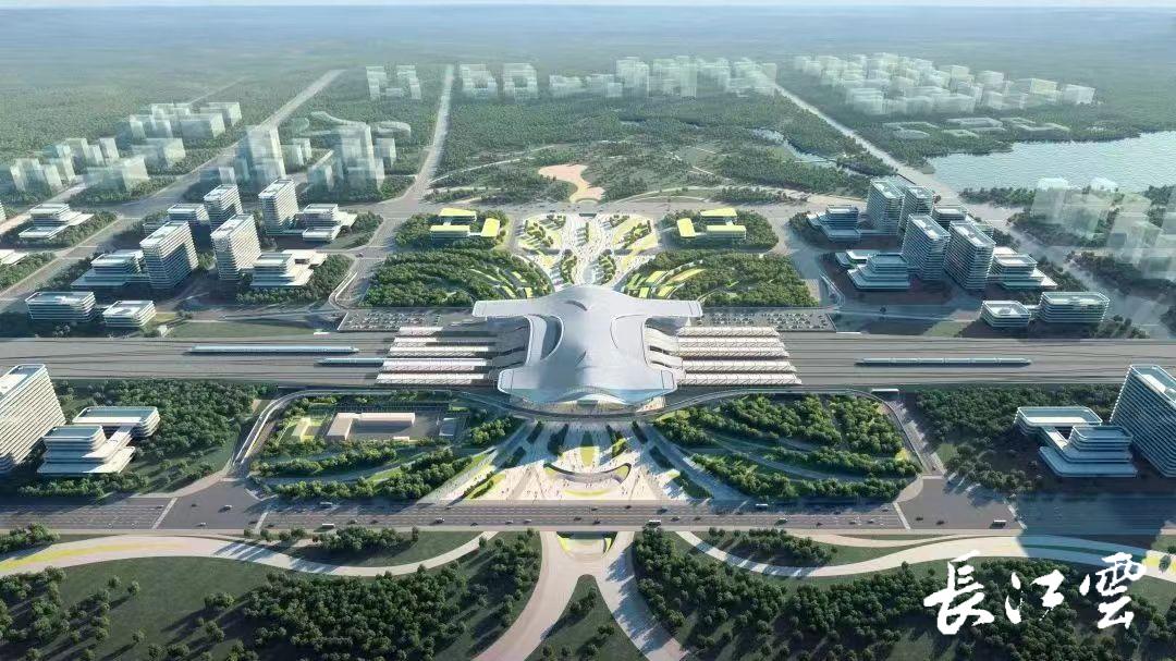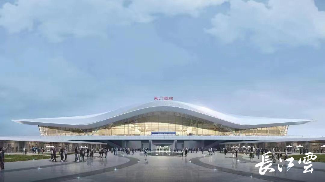 高铁荆门西站站房建筑总面积约4万平方米,设计旅客流量3000人,5站台13线,计划2024年6月竣工。站房为三层,地下出站层、地上站台层和高架候车层,局部设有设备及商业夹层,建筑总高度35.8m(最高点)。荆门西站屋盖采用空间网架形式,造型取自凤舞荆楚、振翅高飞,以舒展流畅的曲线造型,凸显荆门航空文化,一气冲天的姿态,表达出强劲的发展动势,为荆门打造未来影响全国的通航名片。