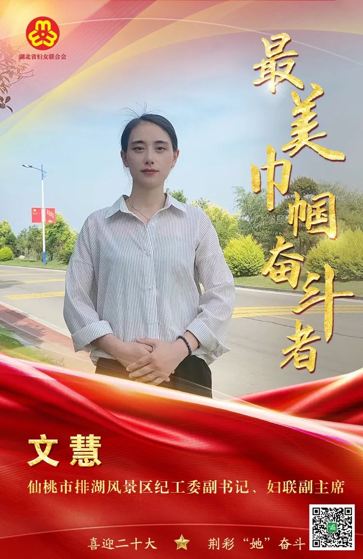 文慧,仙桃市排湖风景区纪工委副书记、妇联副主席。“你要欣赏自己的价值,就得给世界增加价值。每个人都有追求进步的天性,都希望最大限度地实现自我价值深得妇女群众的支持和信赖。而要把这种理想变成现实,靠的不是空想,不是口号,不是一时的激情,靠的是在平凡岗位上的默默奉献。”这是她一直坚守的本心。