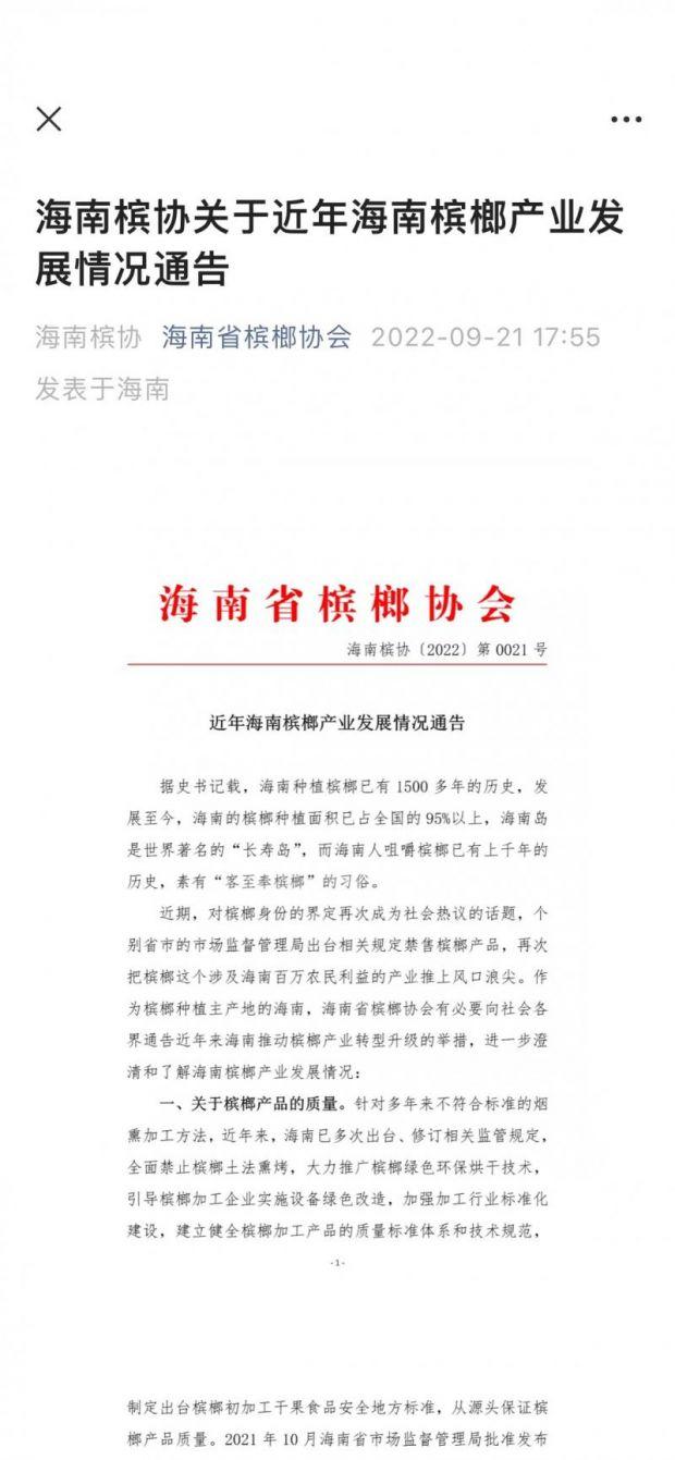 (原题:多地要求槟榔食品下架引热议 海南省槟榔协会回应)