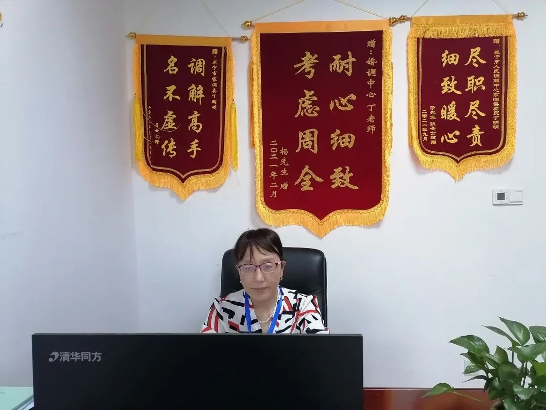 丁明明第一个入职点是咸宁市中院的家事法庭调解室,上诉到市中院的案件相对基层法庭案件来说都是“疑难杂症”,双方当事人矛盾更加激烈,争议的焦点分歧悬殊,调解难度大。丁明明在市中院和市妇联的联合指导下,认真研读案件一审卷宗,找出案件争议的焦点,利用每次中院庭审旁听和上门调查的机会向法官们请教,半年时间参与了家事审判团队的59件婚姻家庭纠纷案件的旁听和调解,她的业务能力和调解技巧在很短时间内迅速提高,很快就能独立到咸安区人民法院,永安法庭、离婚登记处等地开展调解工作。2019年11月,咸宁市人民调解中心成立,将市直部门的调解资源整合,让老百姓有矛盾“只进一扇门”,她开始到市调解中心上班。