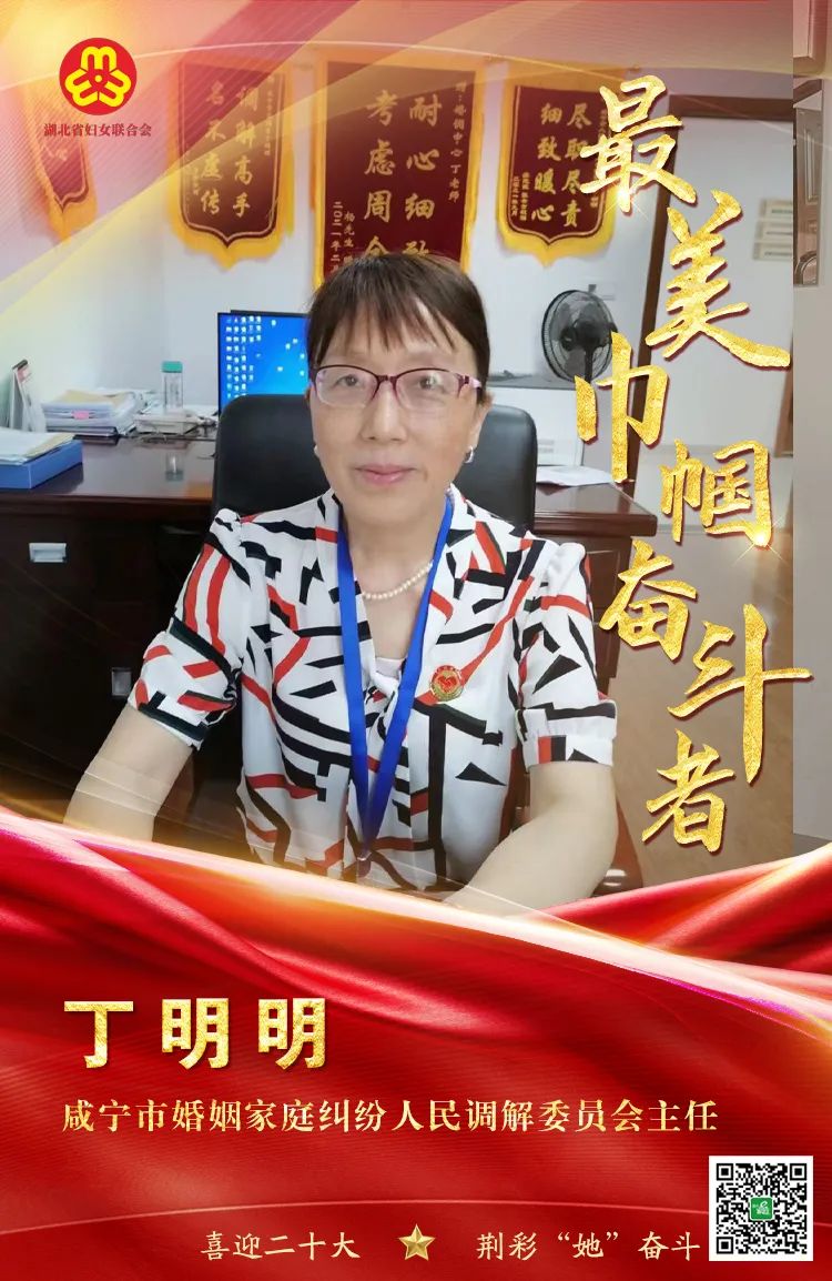 一次次调解历程、一卷卷调解档案、一摞摞荣誉证书和那一面面当事人赠送的锦旗,无不见证丁明明在人民调解工作中的显著业绩。丁明明团队的背后,还有很多像她这样的人在努力,目前咸宁市人民调解中心共进驻特邀人民调解员、公证员等70余名,并建立60余名法律等专业人士组成的专家库。
