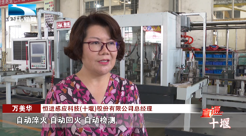 恒进感应科技(十堰)股份有限公司总经理 万美华:“毛坯进去以后,我们的设备通过机械手智能化的同时,自动淬火、自动回火、自动检测,这样就可以让我们设备生产出来的工件的一致性、可靠性、稳定性就可以得到很好的满足。”