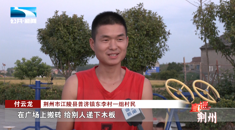 荆州市江陵县普济镇东李村一组村民 付云龙:“建这个广场的时候我也是出了份力的,在广场上搬砖,给别人递下木板,现在隔三岔五就过来走一走,看到村民都玩得非常开心,还是比较有成就感的。”