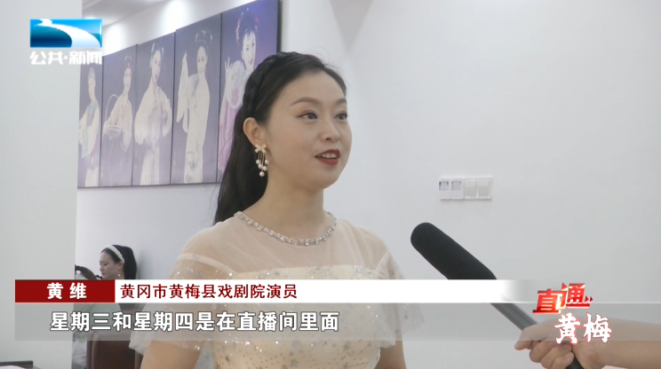 黄冈市黄梅县戏剧院演员 黄维:“星期三和星期四是在直播间里面,星期五、星期六是我们周末剧场,也是同步直播的。”