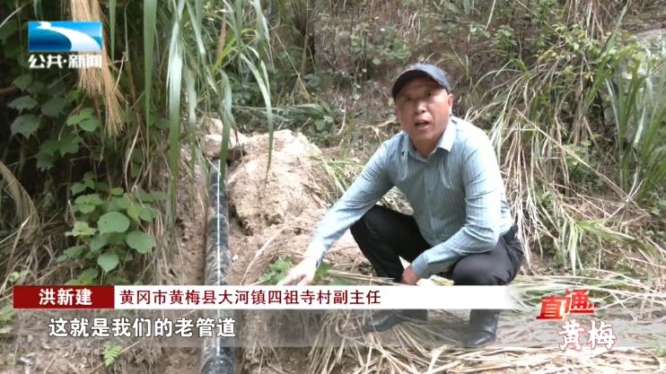 黄冈市黄梅县大河镇四祖寺村副主任 洪新建:“这就是我们的老管道,原来水库水充足的时候,是从这里沿着山坡往上抽水,现在天干了,水就抽不上去了。”