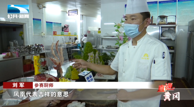 参赛厨师 刘军:“这个菜这个亮点就是,用鱼片一片一片摆出来的一个凤凰的造型,凤凰代表吉祥的意思。”