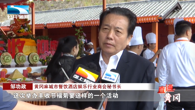 麻城市餐饮酒店娱乐行业商会秘书长 邹功政:“这次举办丰收节福菊宴这样的一个活动,主要意义就是将麻城的菊花,融入美食之中,更加深度融合,更加推广麻城的菊花。有利于菊花产业,从种植、养植到药用、到食用的,三产业深度融合。”