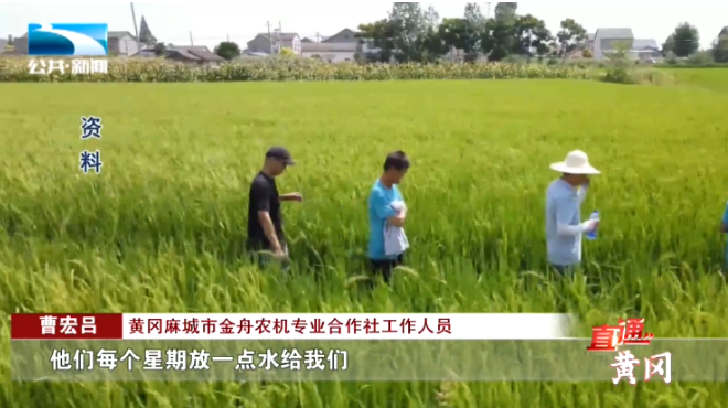 麻城市金舟农机专业合作社工作人员 曹宏吕:“龙池办事处跟我们周边的4个村,为了我们这些田保收,他们每个星期放一点水给我们,才能种到到现在目前水平的水稻。”