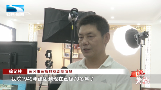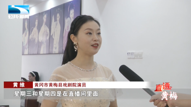 黄冈市黄梅县戏剧院演员 黄维:“星期三和星期四是在直播间里面,星期五、星期六是我们周末剧场,也是同步直播的。”