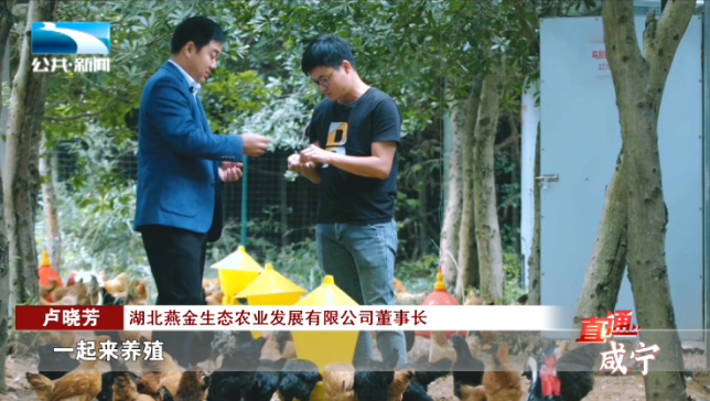 湖北燕金生态农业发展有限公司董事长 卢晓芳:“我们除了自己林下养殖,带来经济收入以外,我们还可以辐射到周边的一些闲置农户,一起来养殖。正所谓一人富,富一人;大家富,富一片。大众快乐,我就更快乐。”