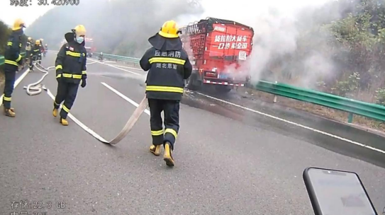 事发当天,在沪渝高速公路恩施段发生一起货车自燃事故,交警接到报警后,立即赶往现场,同时联系消防、施救部门。