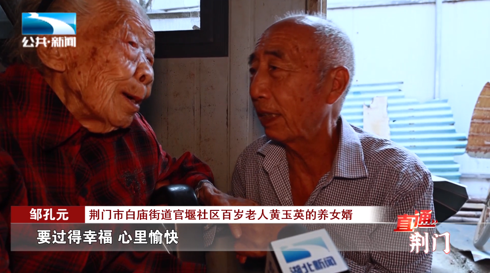 荆门市白庙街道官堰社区百岁老人黄玉英的养女婿 邹孔元 :“您现在活到102岁了,要过得幸福,心里愉快。”