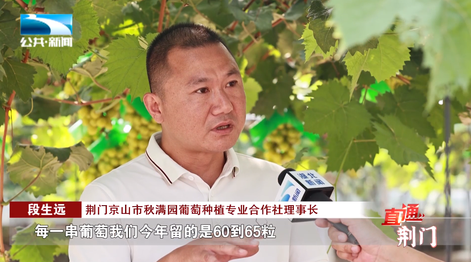 荆门京山市秋满园葡萄种植专业合作社理事长 段生远:“每一串葡萄我们今年留的是60到65粒,所以最后这串葡萄,基本上它的每一穗的重量都是接近的,每一穗基本上是在900克到1千克左右。”