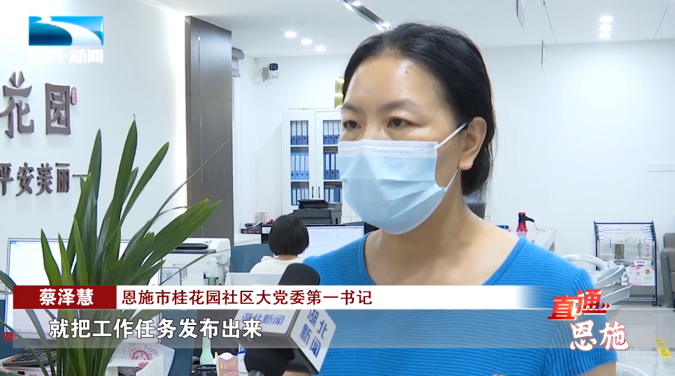 恩施市桂花园社区大党委第一书记 蔡泽慧:“在我们的支部书记群里面,就把工作任务发布出来,让各支部书记各片长都清楚,然后他们再下去在自己支部内部再来进行通知。”